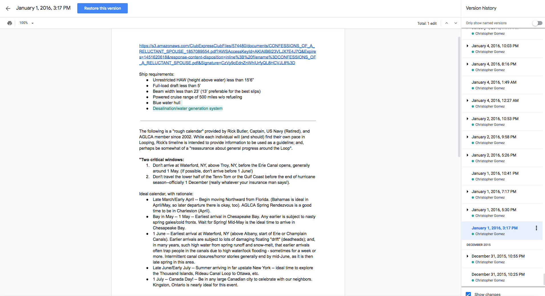 If you look at the revision history for our Two Plus Crew planning document, you'll see small incremental updates over the span of four years. At first the updates came nearly every day; now they come about once per month. That's because most of the heavy planning is already written down. Occasionally I go back through and re-read the whole thing just to see if there is anything I can accomplish today – be massive.